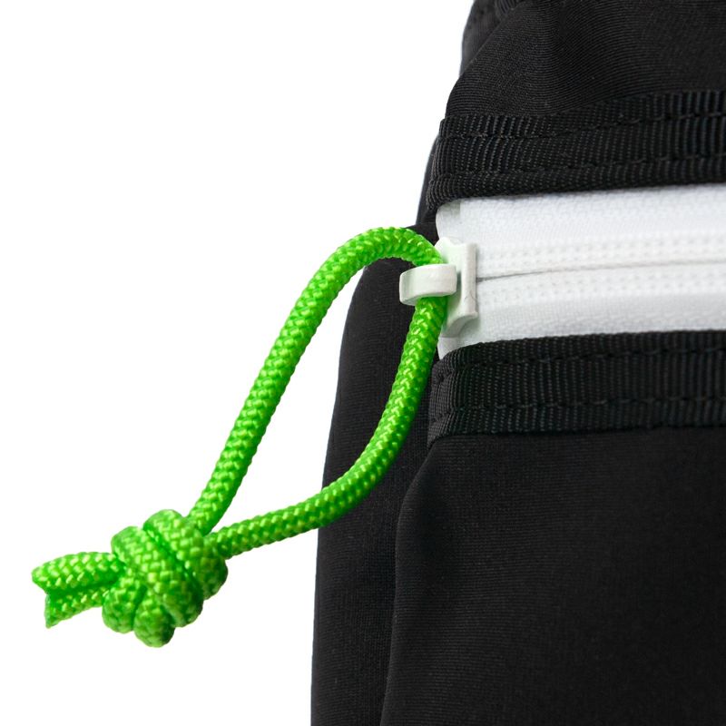 今回新たにポリエステルニットにポリエステルコーデュラ?オックスを張り合わせた生地を採用。高密度に織り上げたポリエステルニットと摩擦に強いコーデュラを張り合わせることにより、撥水性、強度を高めました。ファスナー部分を内側に収めたことで、スッキリとしたバッグに仕上がりました。