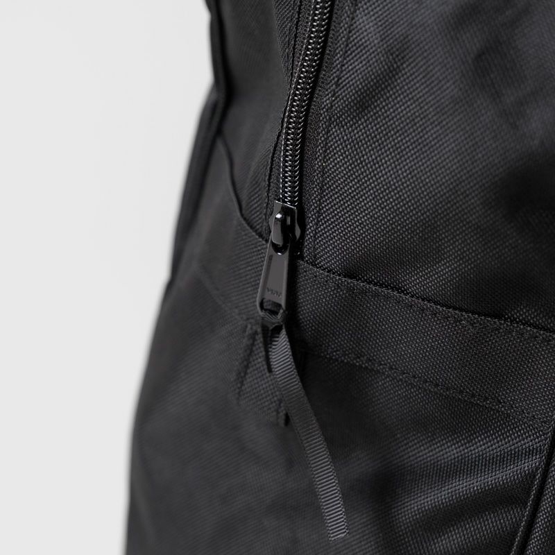 フロントにはさりげないロゴ刺繍と、スマホが収まるミニポケット付き。