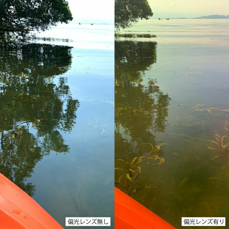 眩しさや乱反射した光をカットしてくれる偏光レンズは海やレジャー、アウトドアはもちろん、ゴルフにも最適でグリーン上の芝目も見やすくなります。