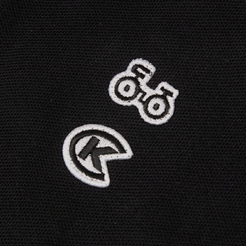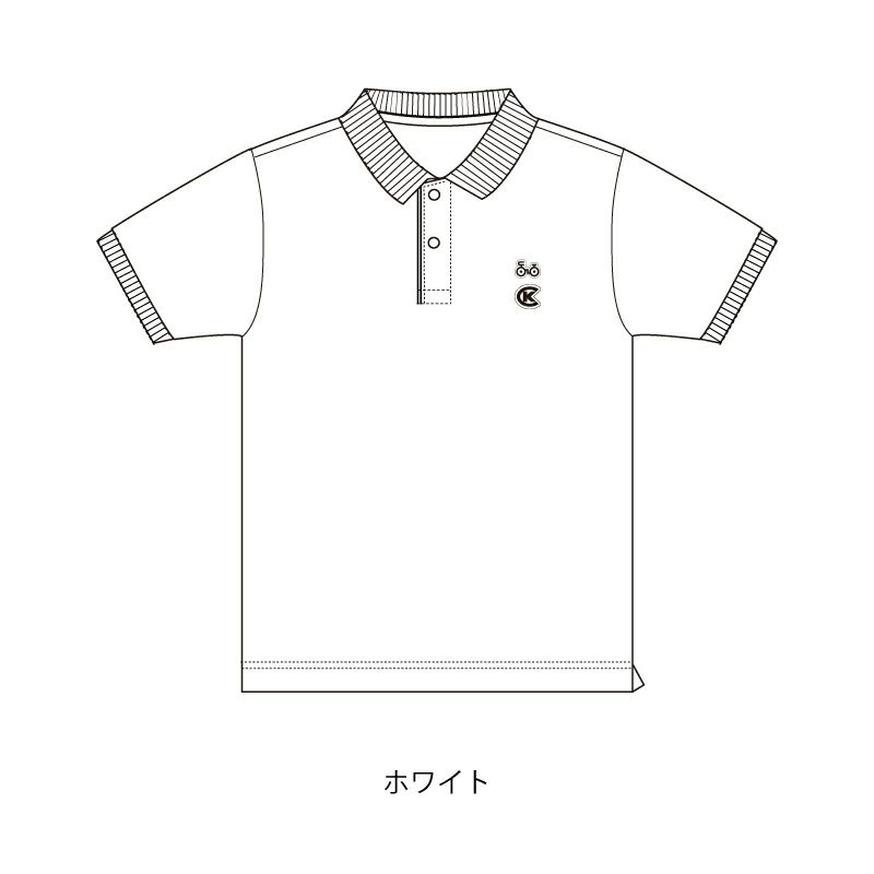 ぱっと見はベーシックなポロシャツに自転車ロゴとKCのワッペンを敢えて2つ付けてアクセントに!
