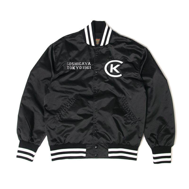 光沢感のあるナイロン素材を使用したSKOOKUMとのコラボレーションスタジャンが登場です。
