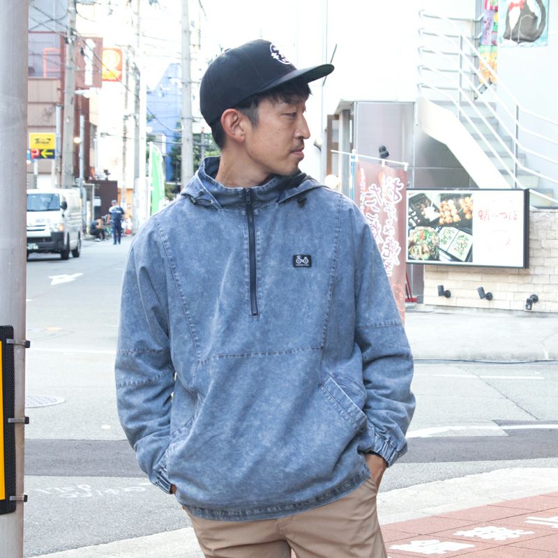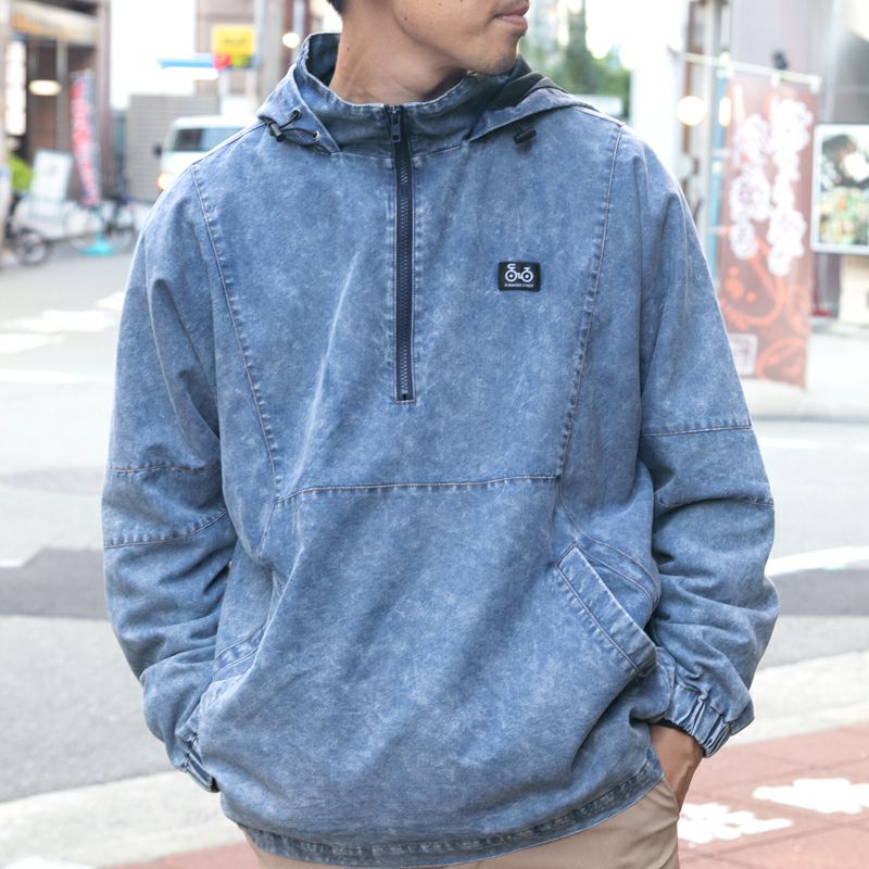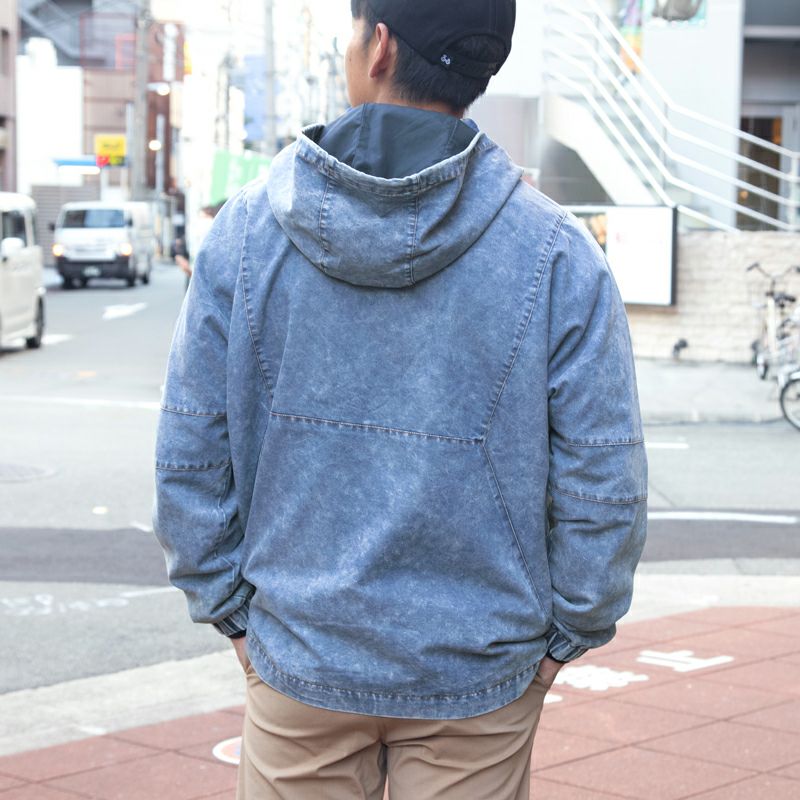 ケミカルウォッシュ加工のデニム生地を使用したアノラックパーカーが登場です。