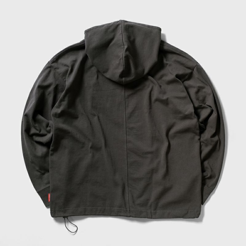 薄すぎず、厚すぎないので、これからの季節に丁度いいアイテムです。裾にはしぼりがついているので、お好みのシルエットに絞って頂けます。