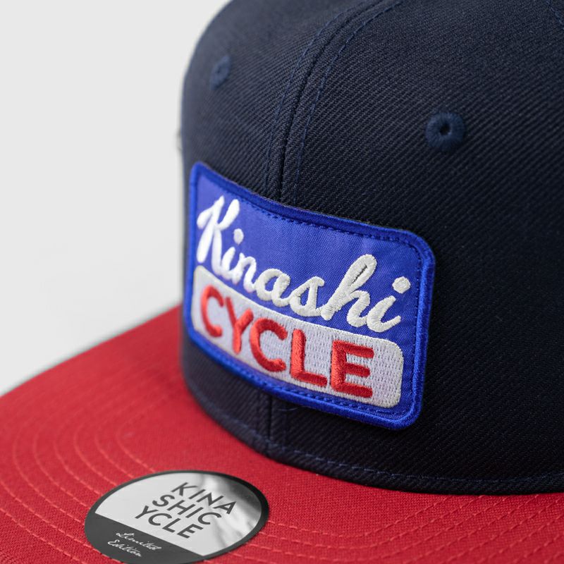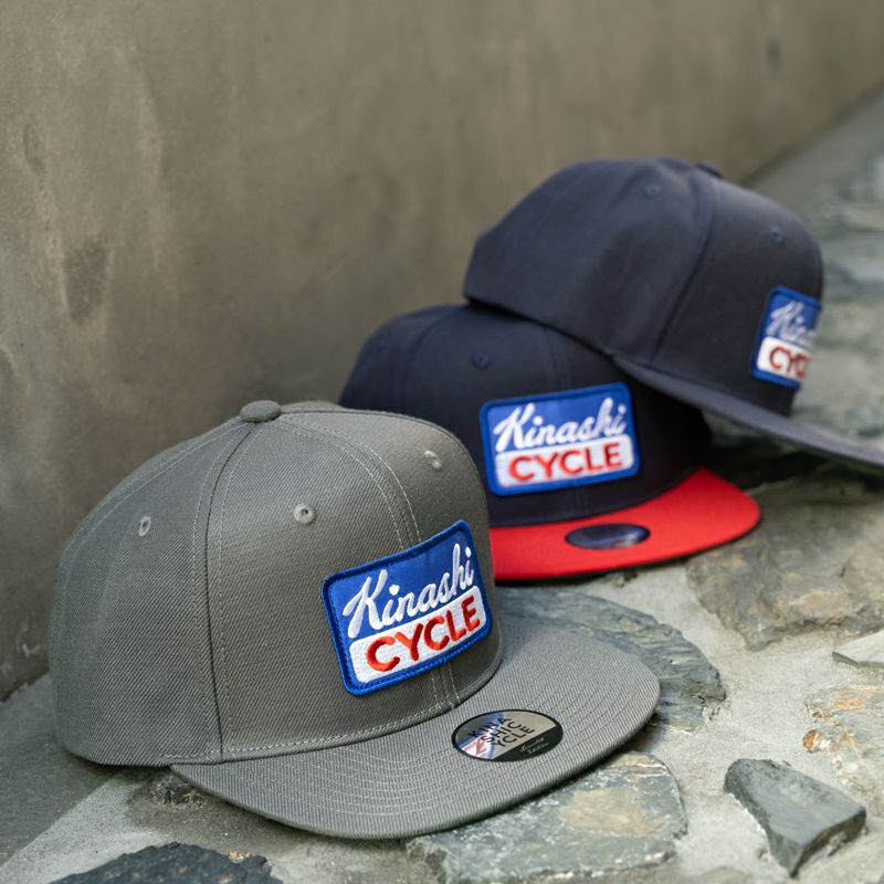 フロントにはキャッチ―なカラーの「KinashiCYCLE」刺繍ワッペン。