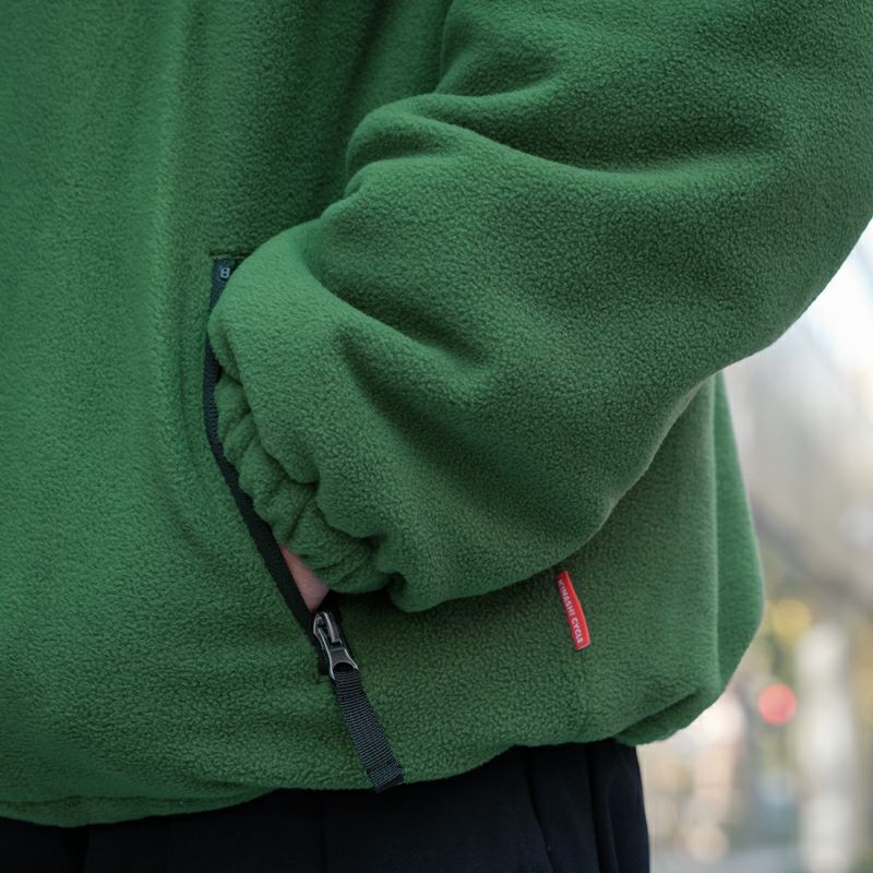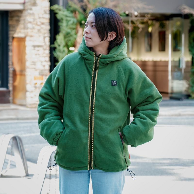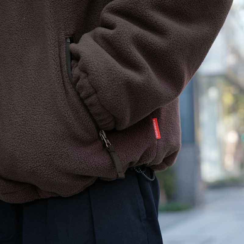 もこもことしたボリューム感の中綿入りフリース素材が暖かい、これからの季節に欠かせない防寒アウターです。