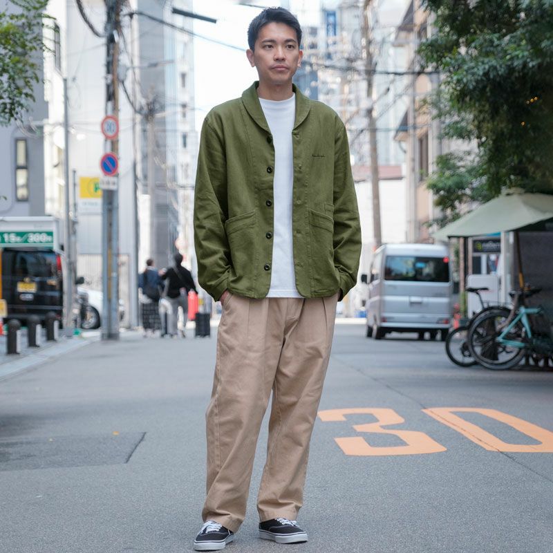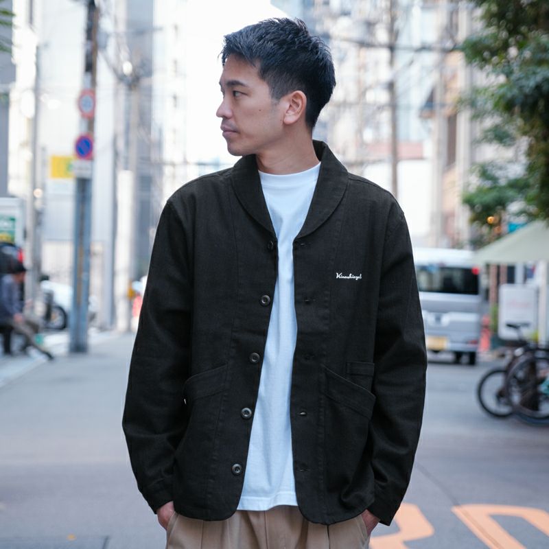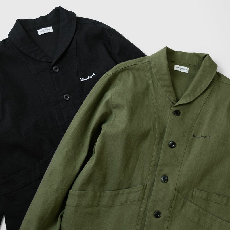 細かなヘリンボーン模様が入ったカバーオールの登場です。