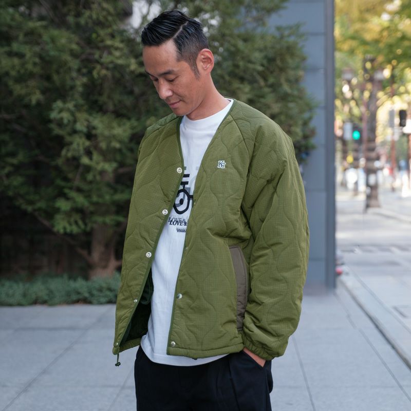 軽量ながらも保温性があるキルティング生地で動きやすく、中のインナーによって秋から春先までお使いいただけます。