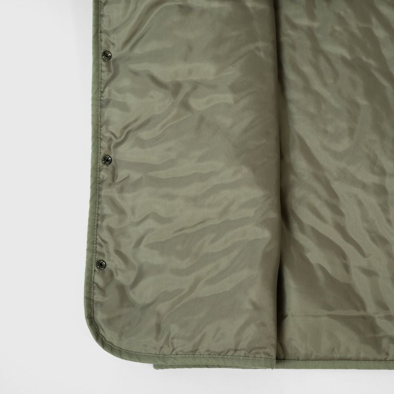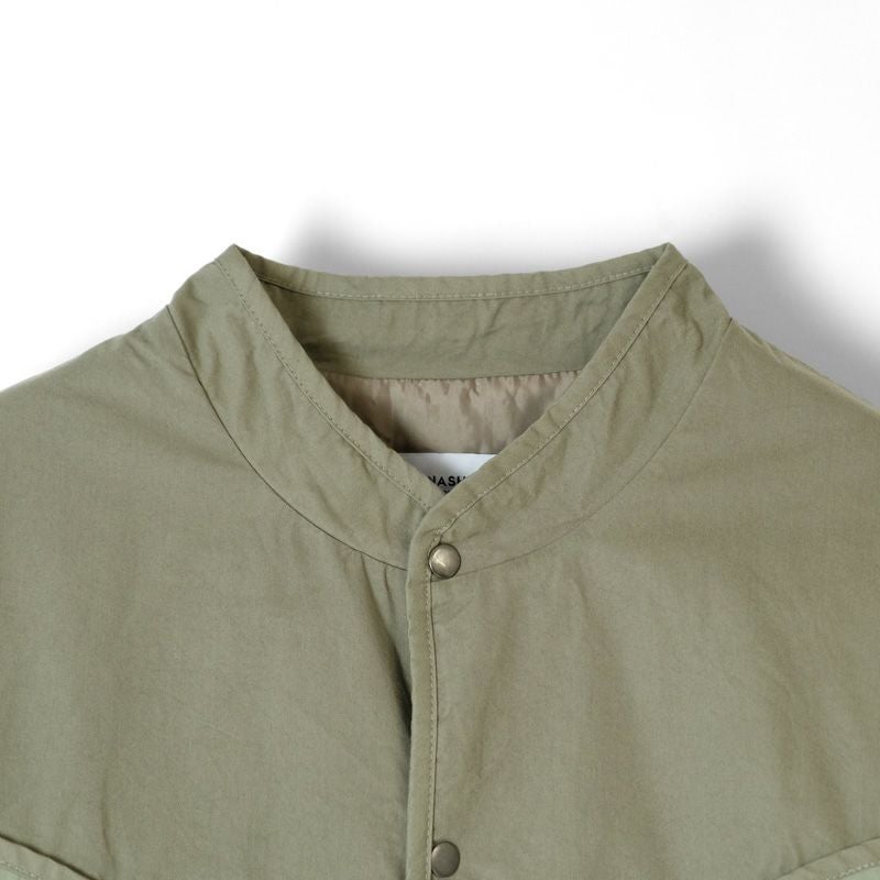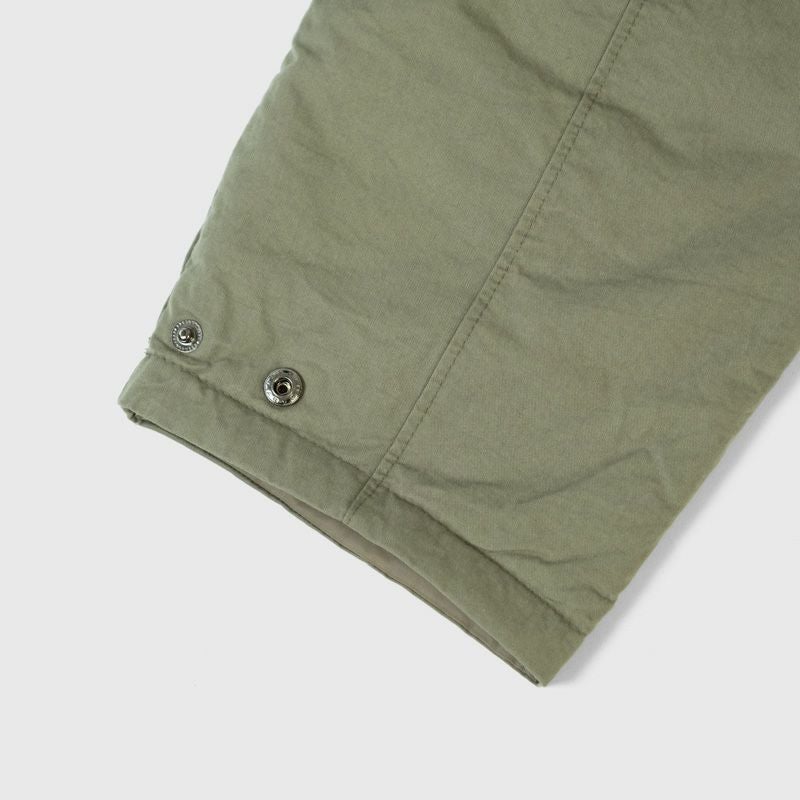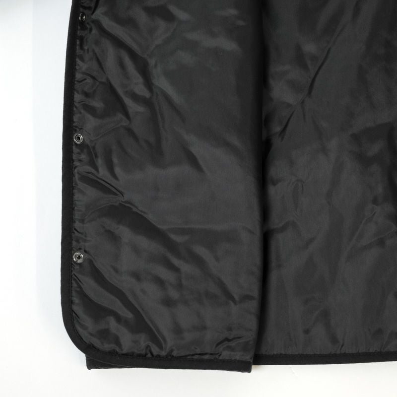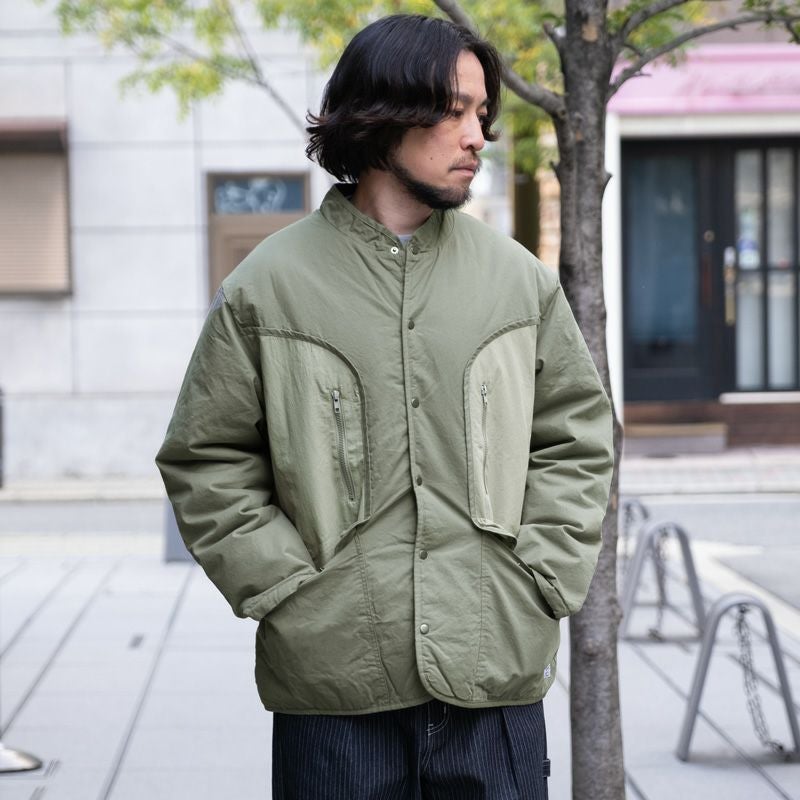 ゆとりある身幅とスッキリとした着丈のシルエット。生地は薄手ながら中綿入りで、肌寒い季節の羽織にぴったりな一着です。