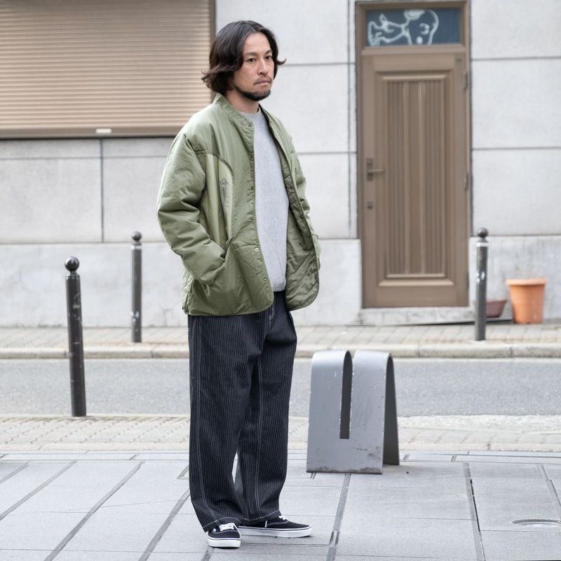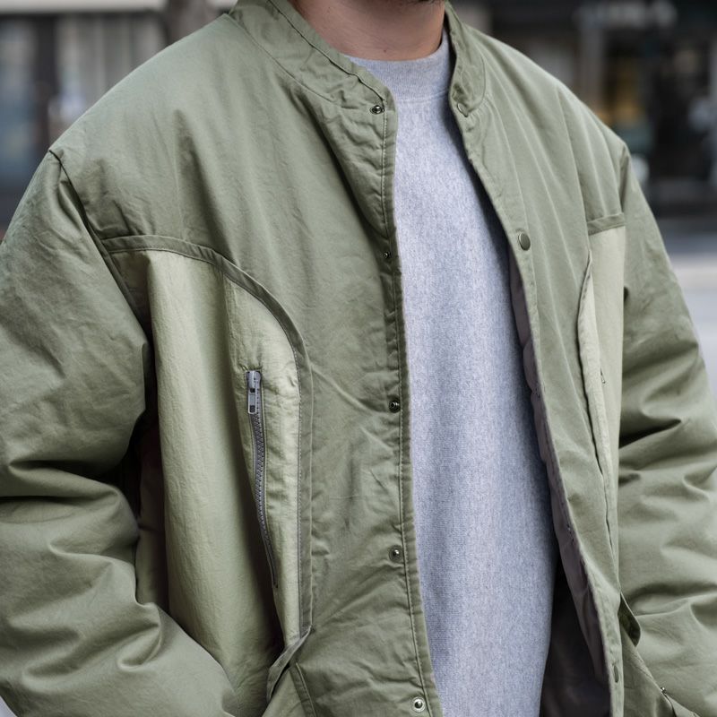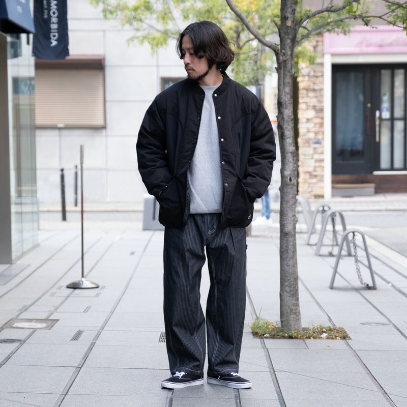 ワイドパンツやデニム、カーゴパンツなどストリートな着こなしには勿論、スラックスなどのきれいめなスタイルにも取り入れやすい万能なアウターです。