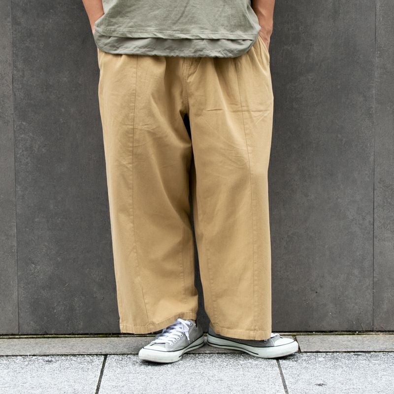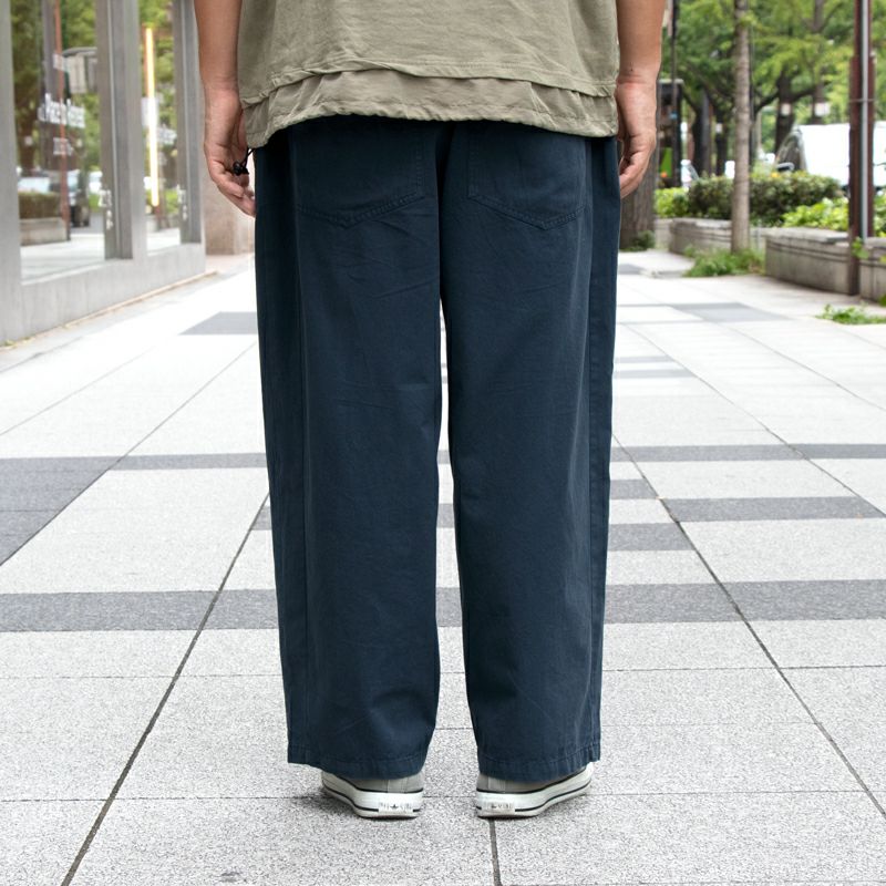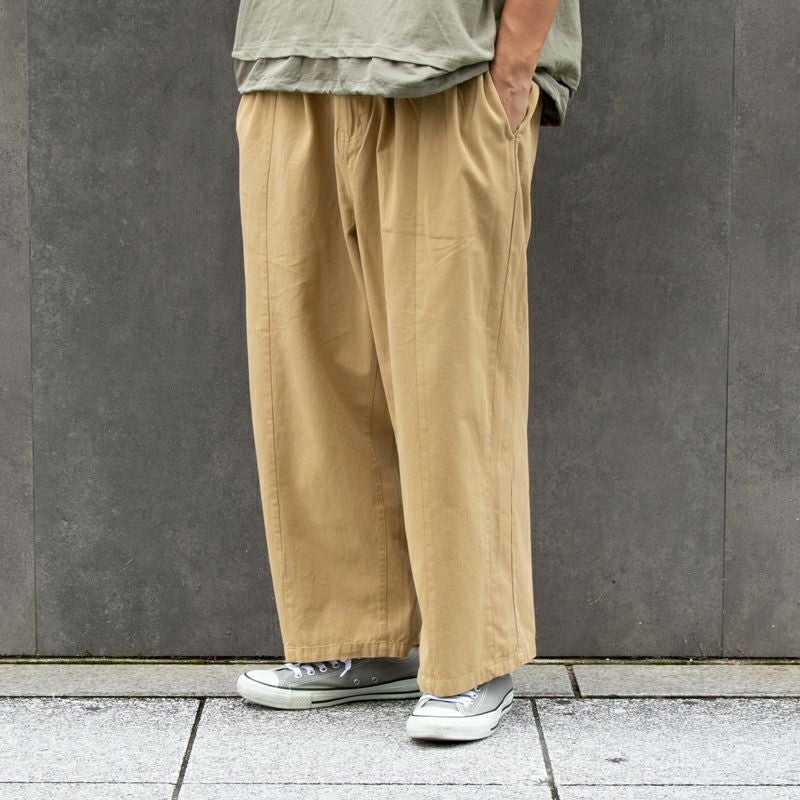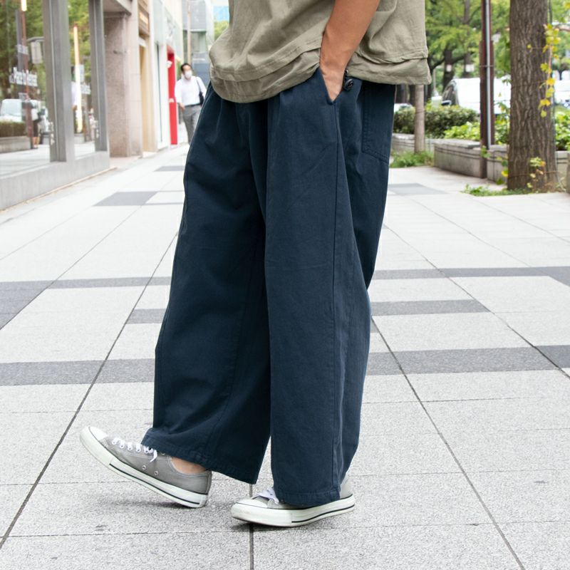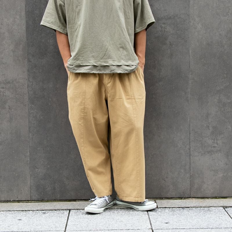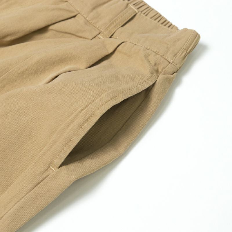 コットンツイル素材のためしなやかな生地感で、ウエストの後ろ側がゴムのため履き心地も◎
