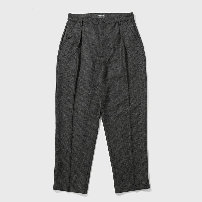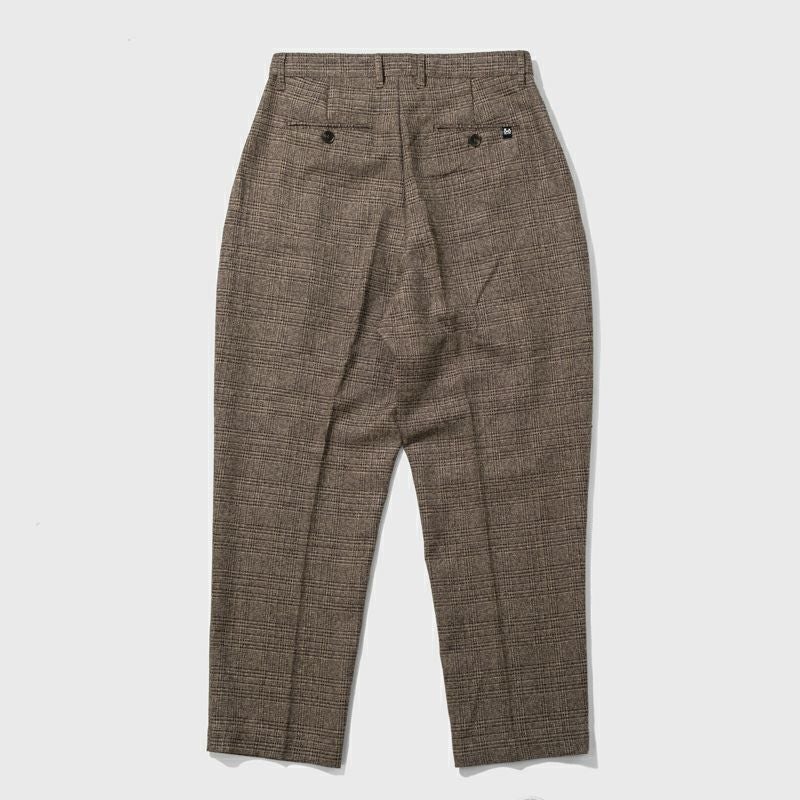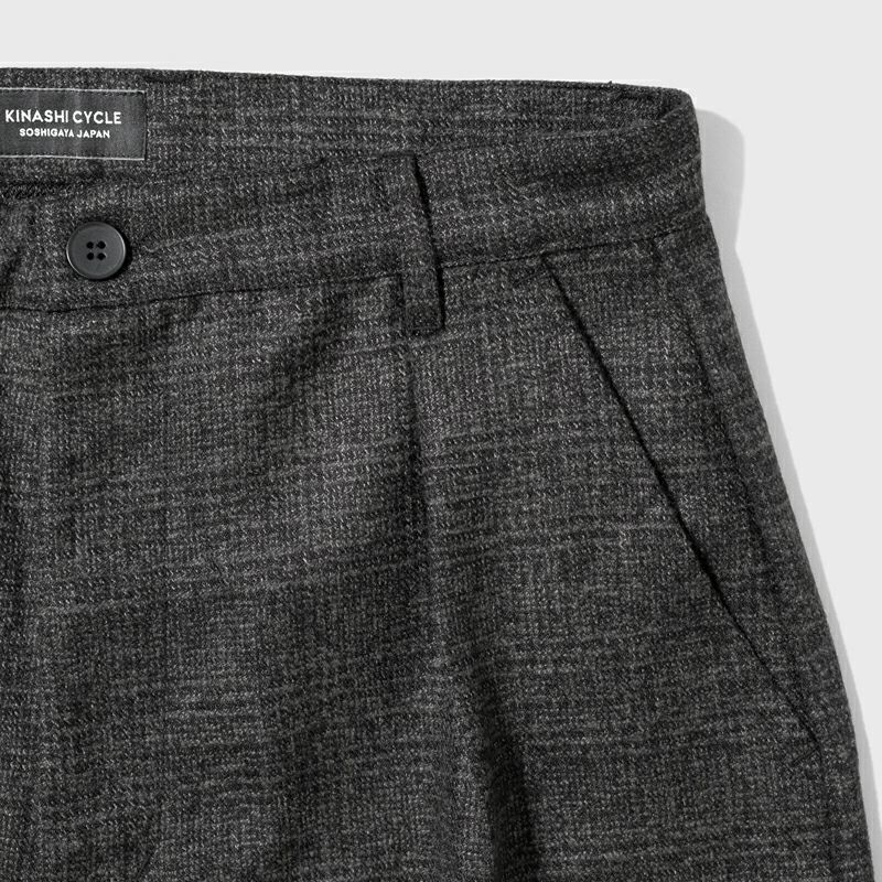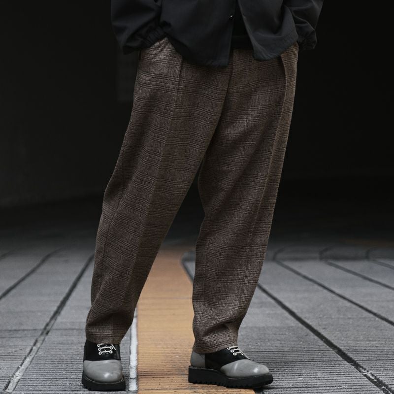 ウール混素材のチェック柄生地を使用したタック入りバルーンスラックスの登場です。