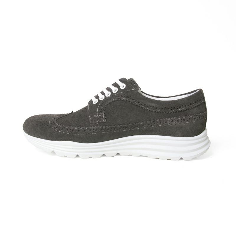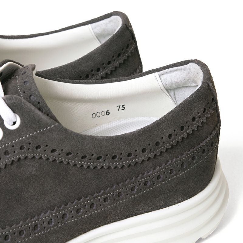 今回はクッション性に優れた軽量ラバーソールを採用し柔らかい履き心地に。アッパーはもちろんウイングチップデザインで、グレーのスエード素材でまとめることでカジュアルからジャケットスタイルまで相性◎