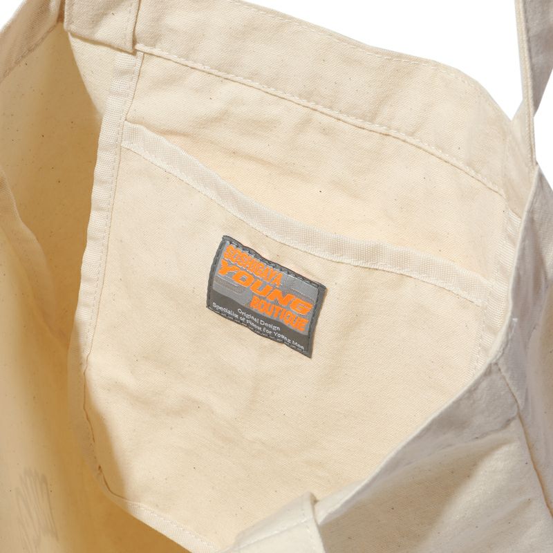 使いやすい大きさと程よい厚さのトートバッグにオリジナルロゴを施しました。取っ手が長いので肩からかけられて使い勝手も◎
