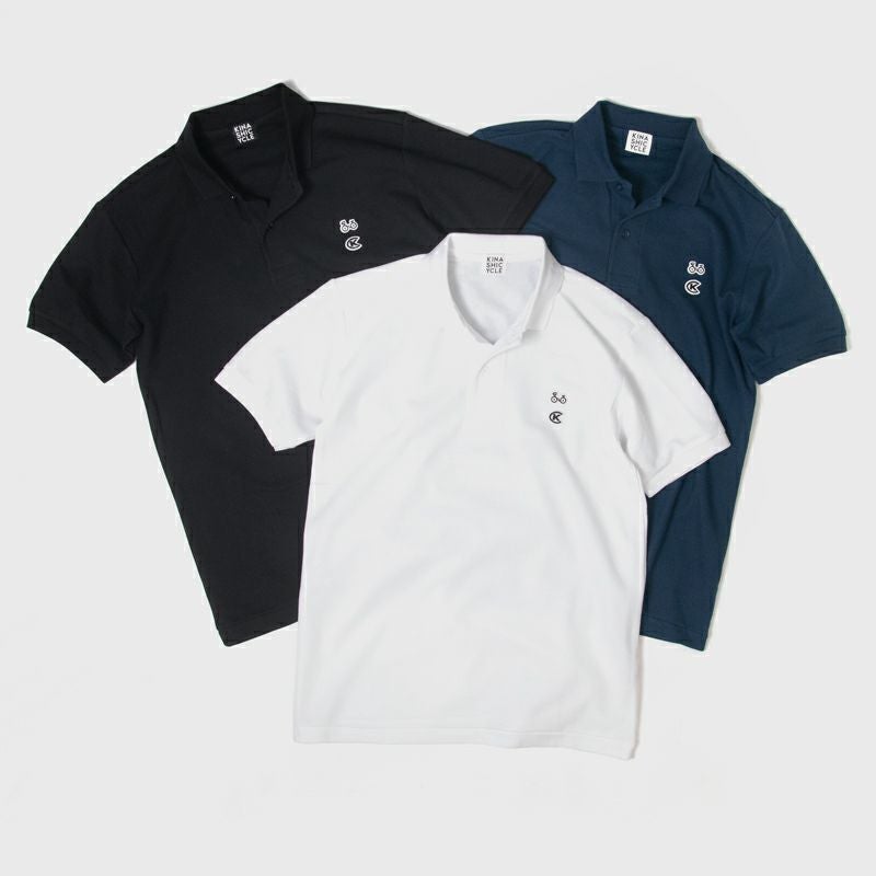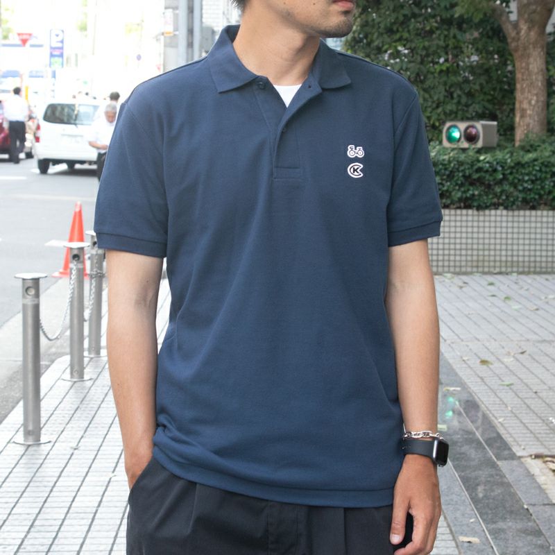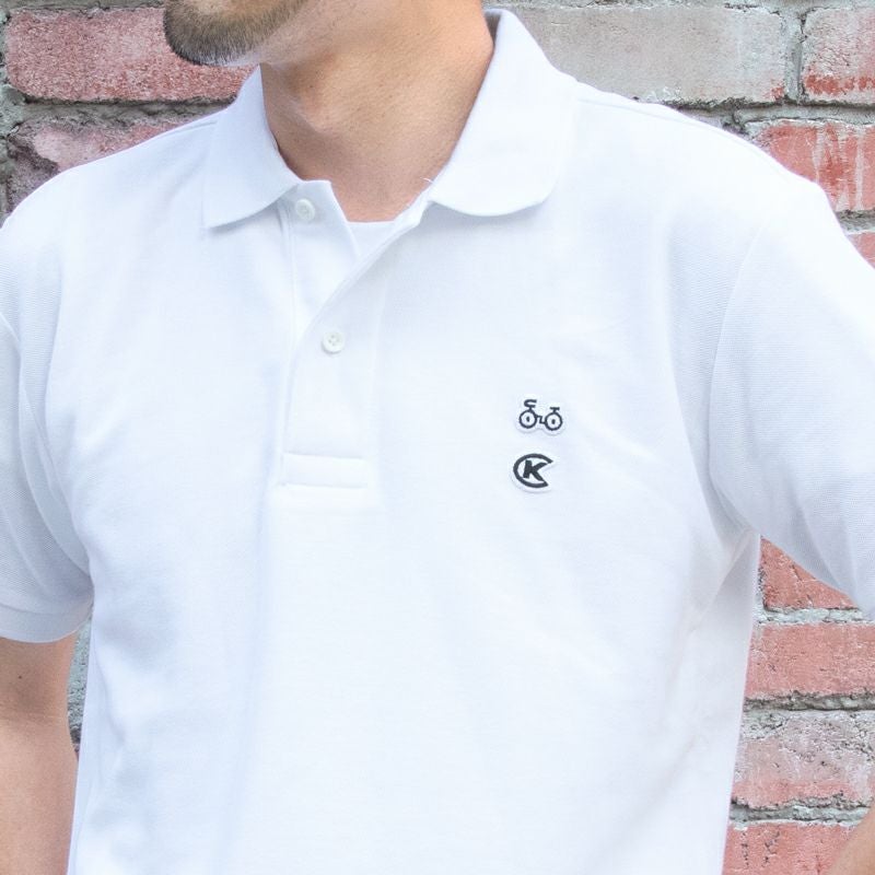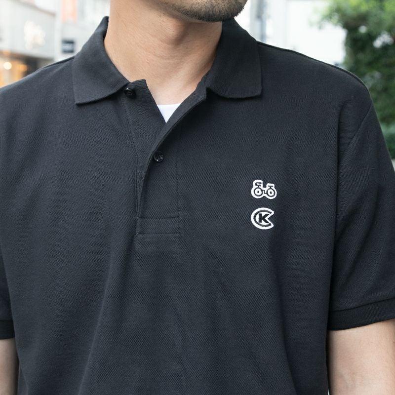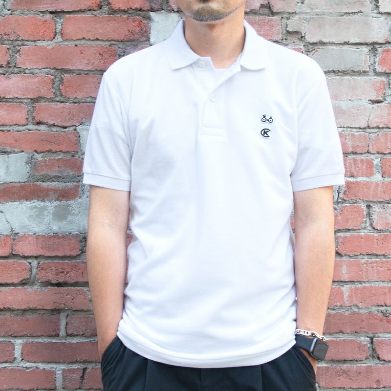 ぱっと見はベーシックなポロシャツに自転車ロゴとKCのワッペンを敢えて2つ付けてアクセントに!