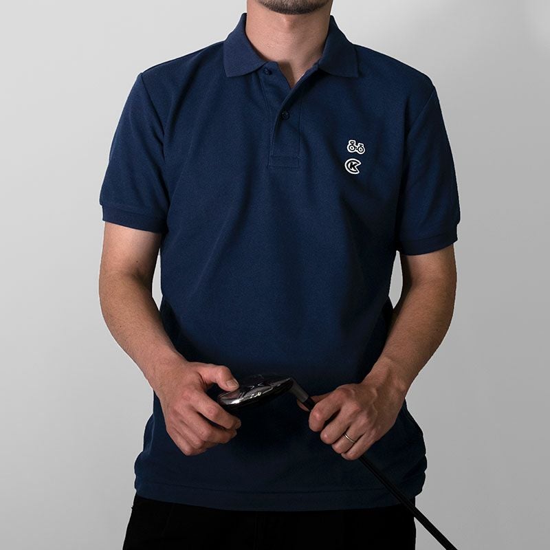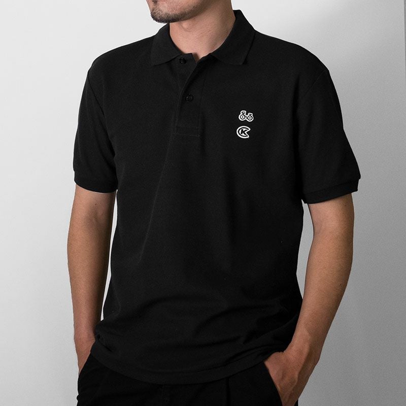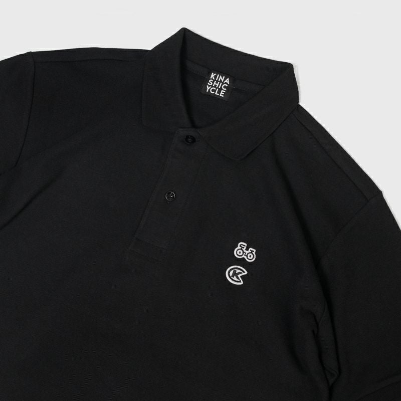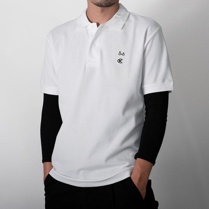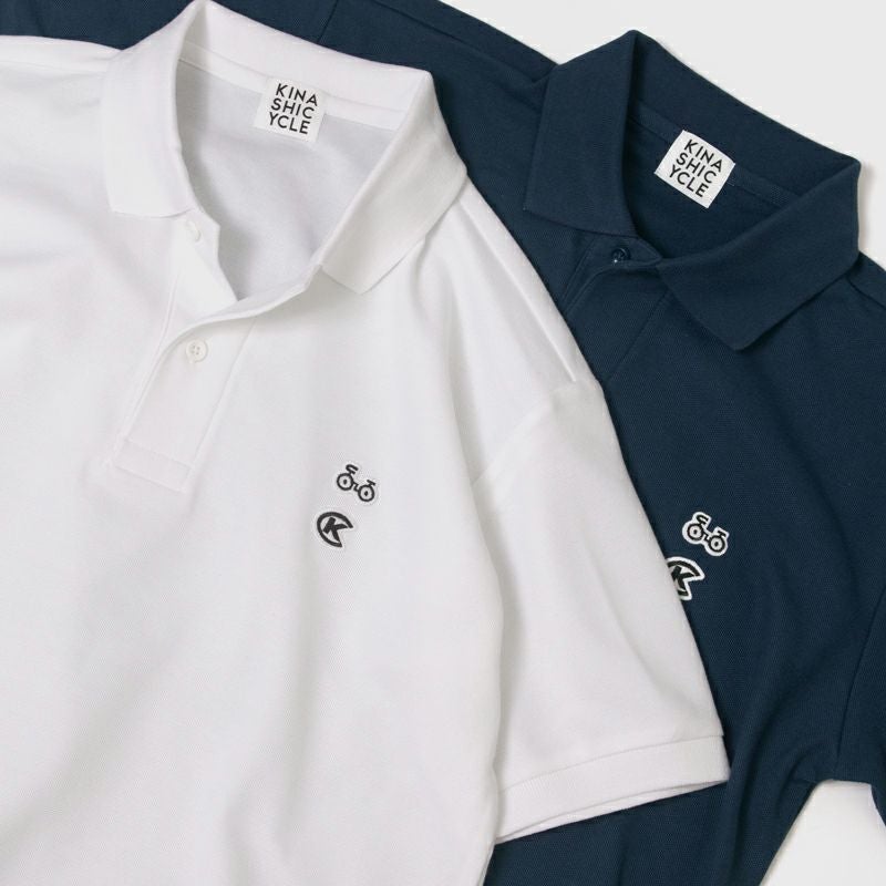 ぱっと見はベーシックなポロシャツに自転車ロゴとKCのワッペンを敢えて2つ付けてアクセントに!
