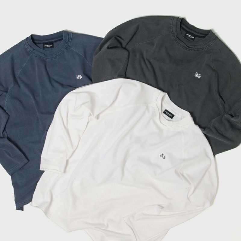 カラーはシンプルで合わせやすいホワイトに加え、後染めの色味がわかりやすいネイビー・ブラックの3色展開です。