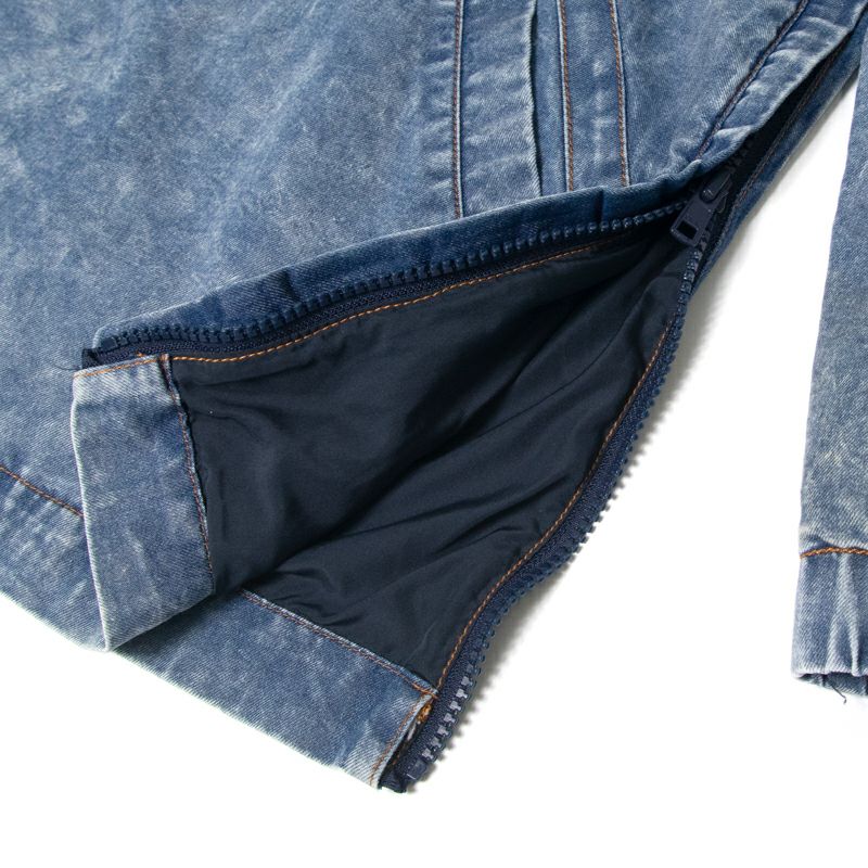裏地も付いていて適度な防寒性に加えて着心地も良く、ライトデニムなので寒い時期のインナーとしても着用できるアイテムです。