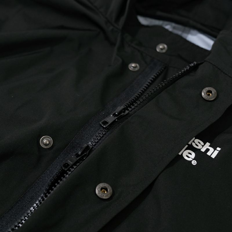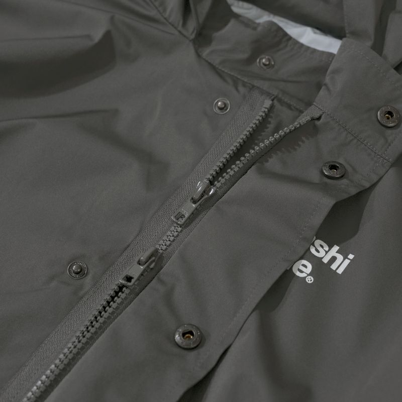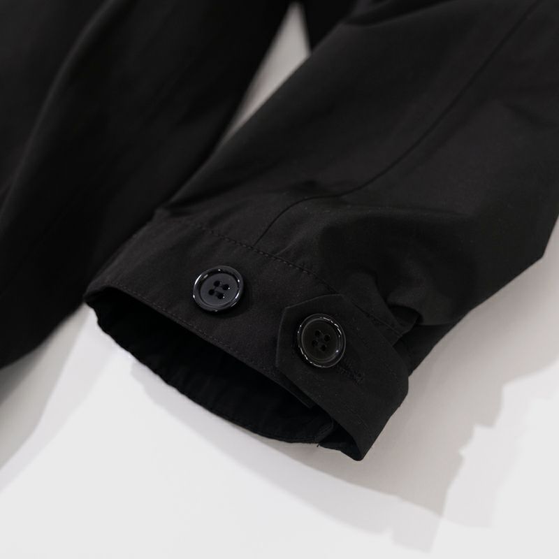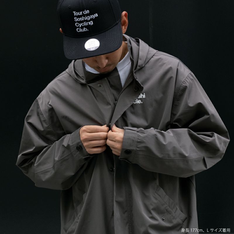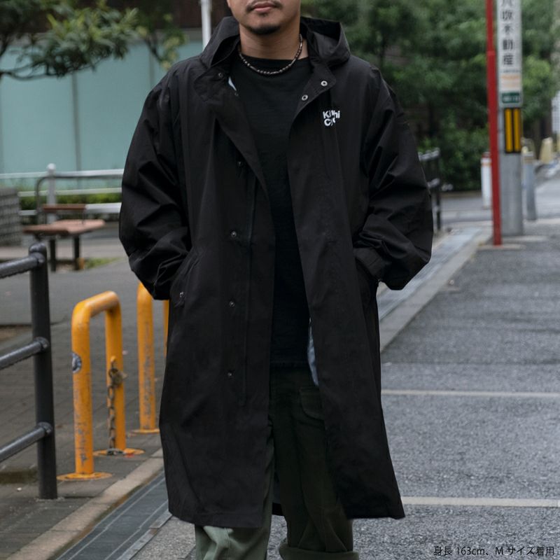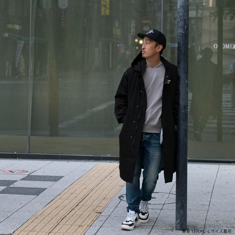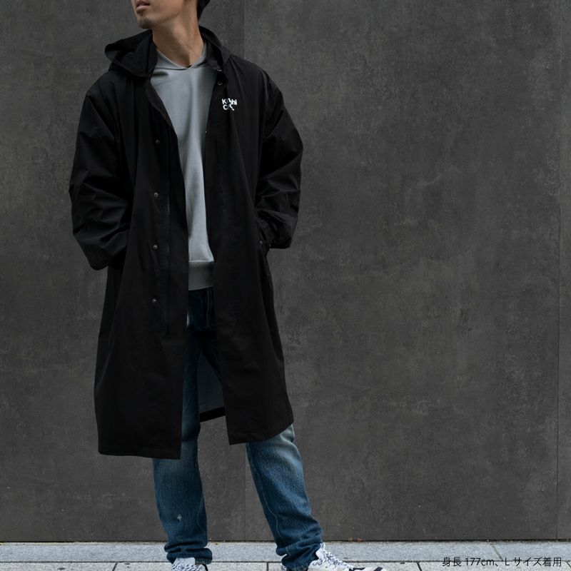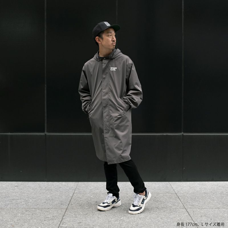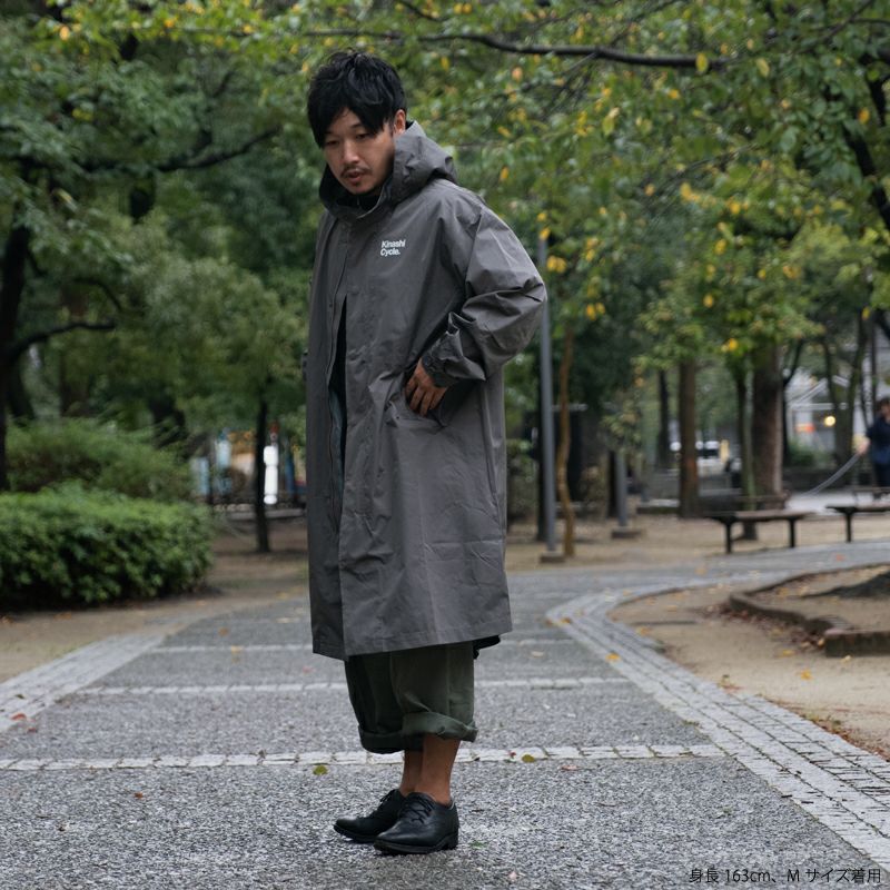 形をレインコートっぽくならないよう、モッズコートの形をベースに仕上げました。通常のレインコートに比べ身幅を狭くすることでタウンユースでも使いやすく、カジュアルスタイル、キレイ目スタイルまで幅広いコーディネートに合わせられる一着です。表生地の撥水はもちろん、内側の縫製箇所にシームテープを施しているので多少の雨でも安心。