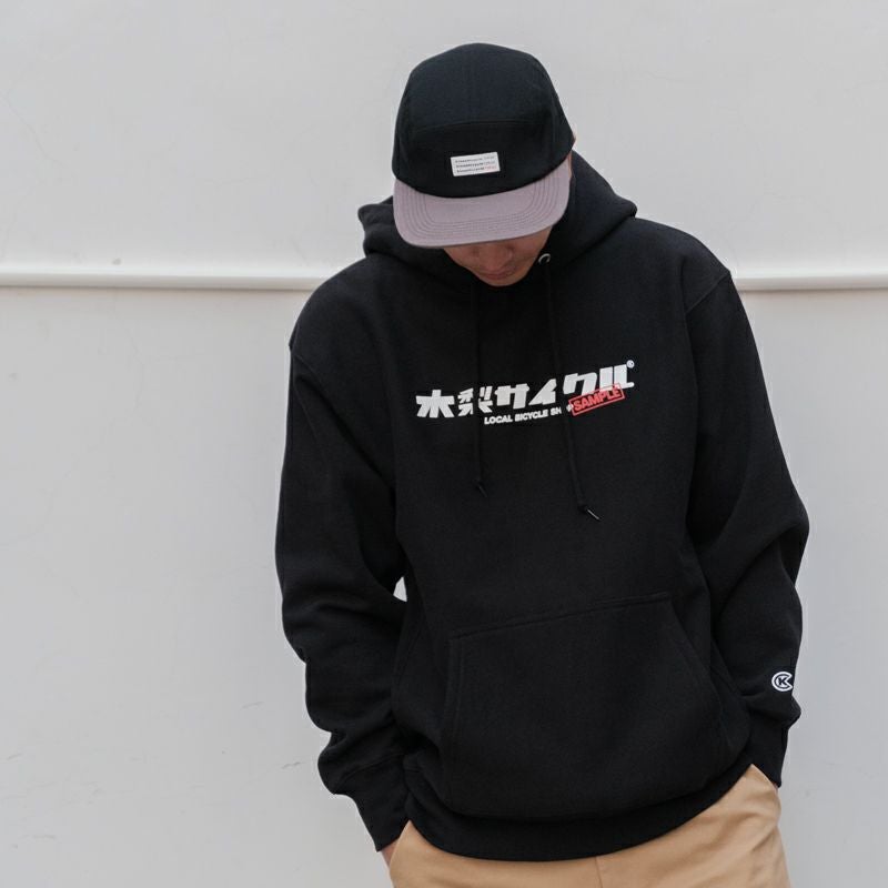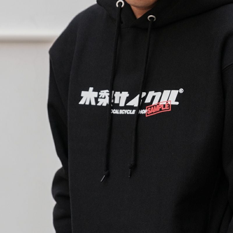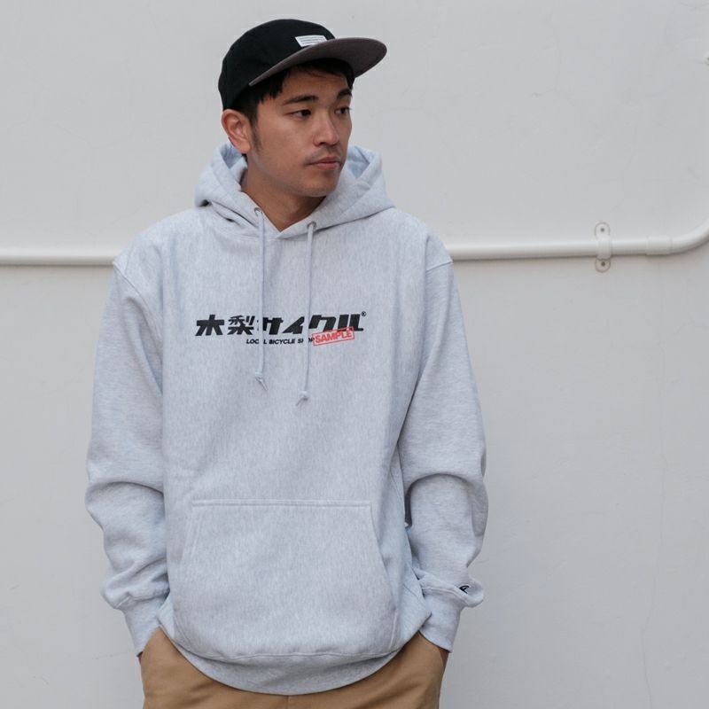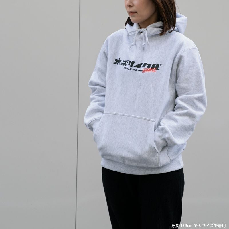 サンプルじゃないけど「sample」パーカーなので100円値引きします。