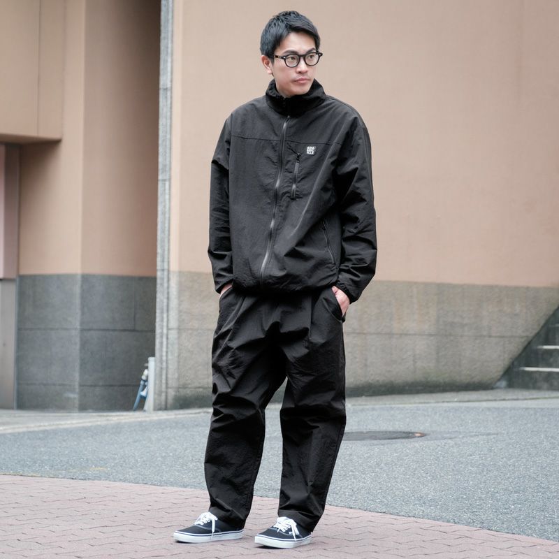 シャカシャカ生地のセットアップが登場です。