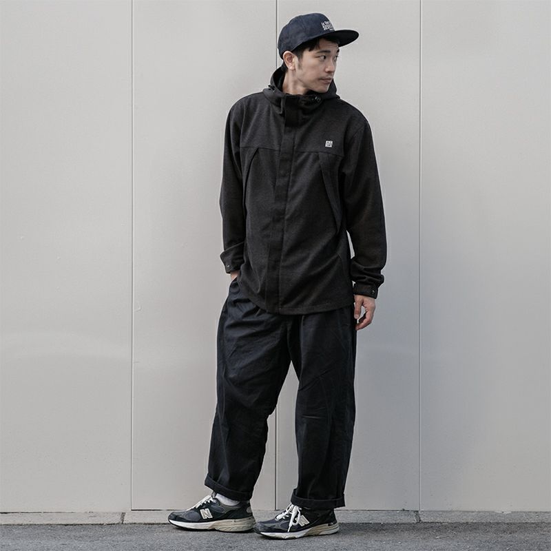 通常マウンテンパーカーはその名の通り、登山用のデザインですが、メルトン生地にすることでタウンユースでも使いやすいカジュアルなデザインに。