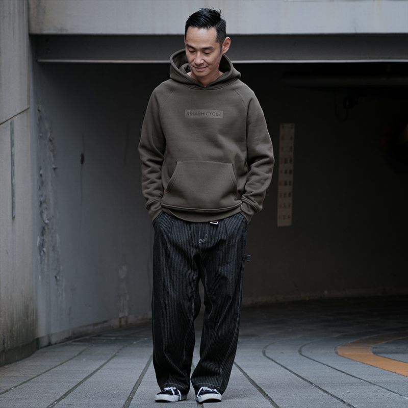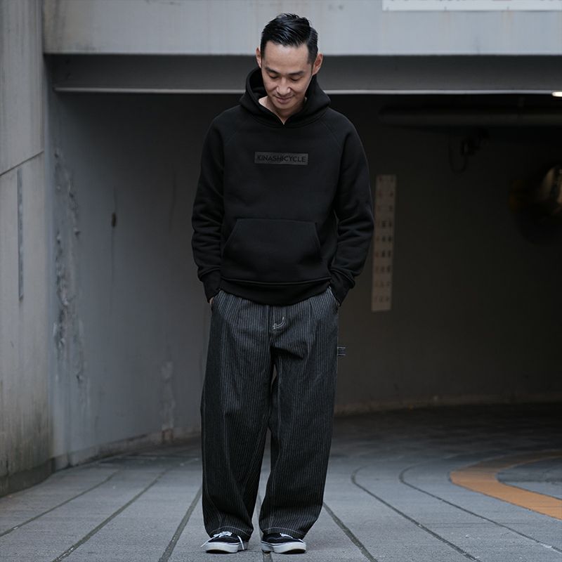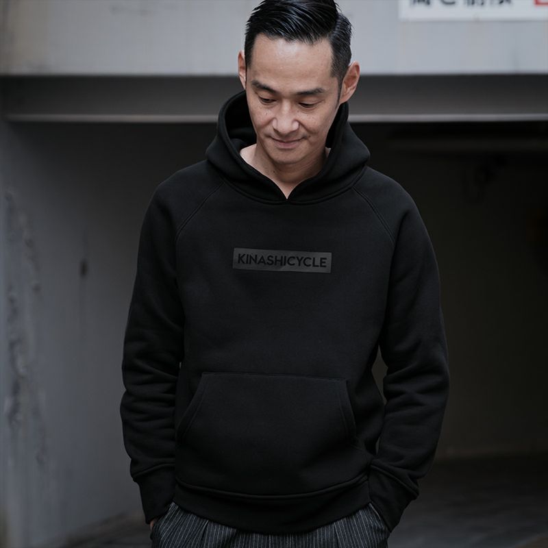 離れて見ると無地に見えますが、よく見ると「KINASHICYCLE」を同色でプリントをオン。