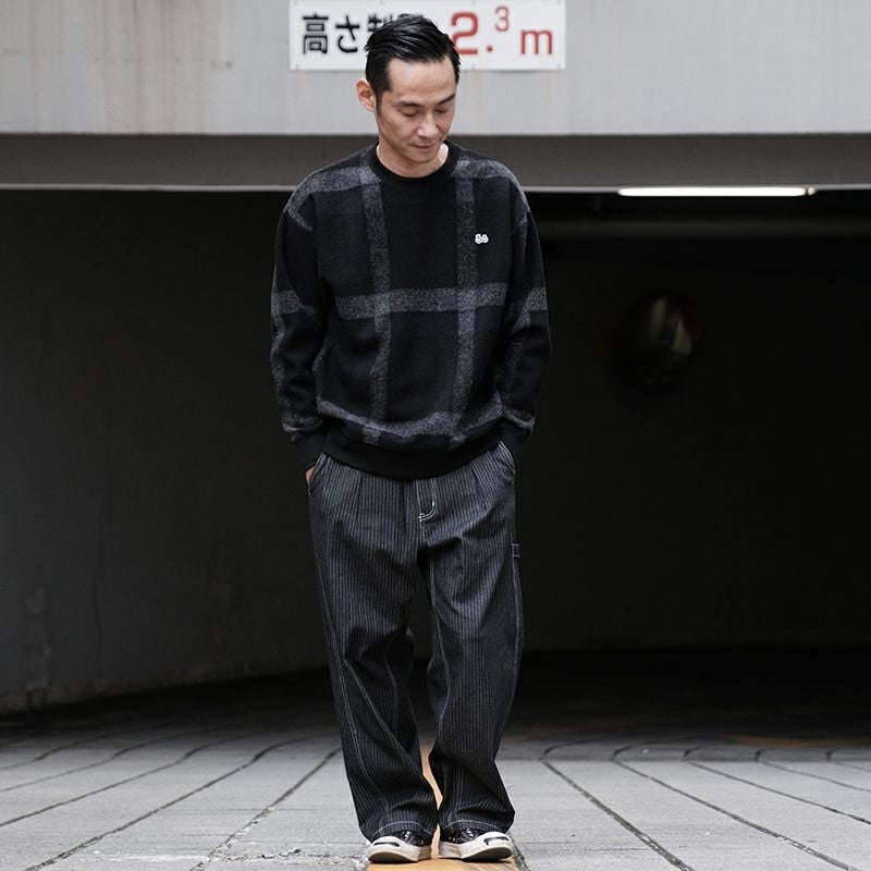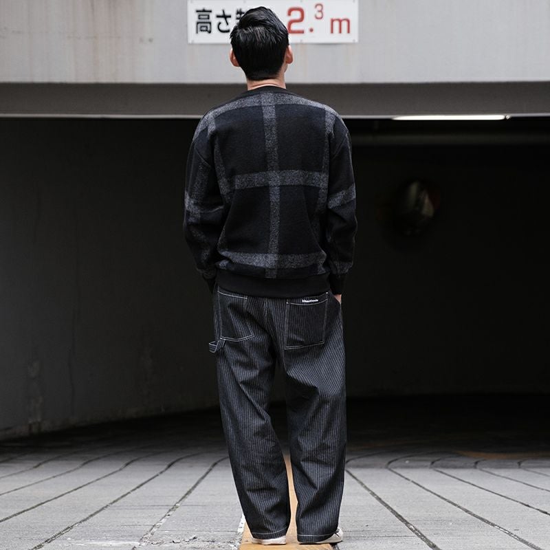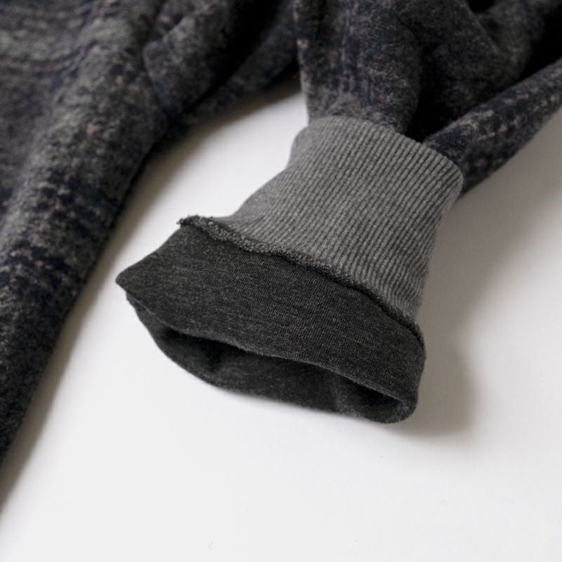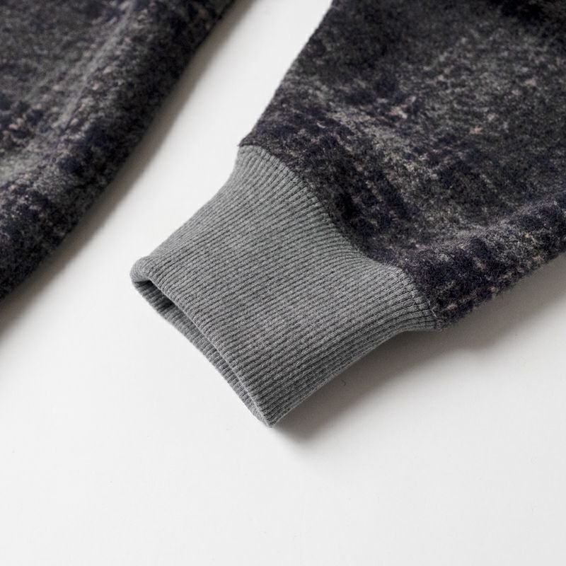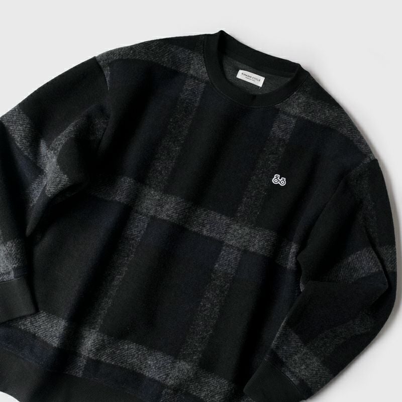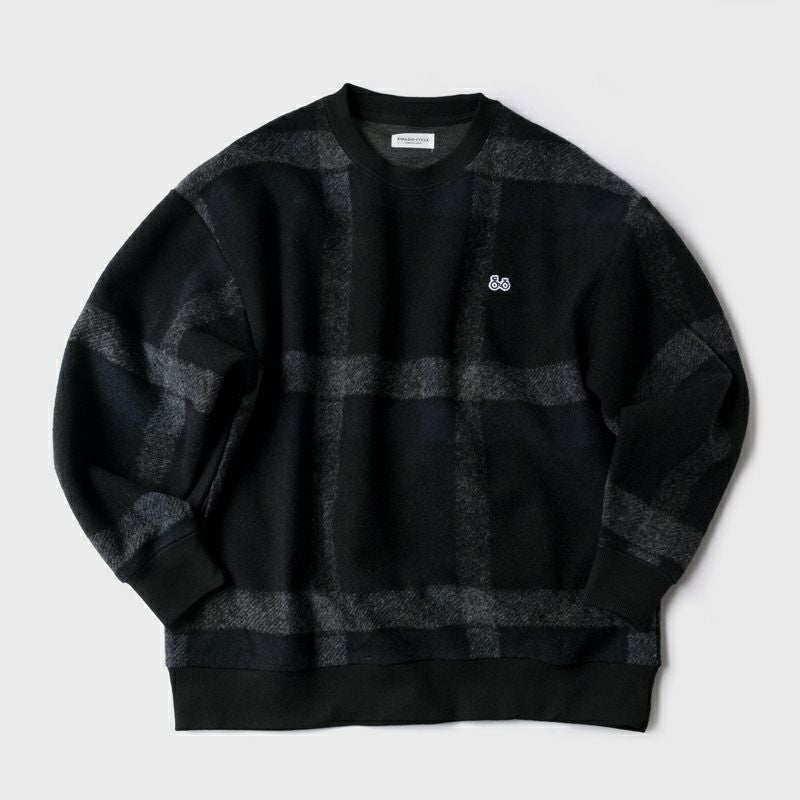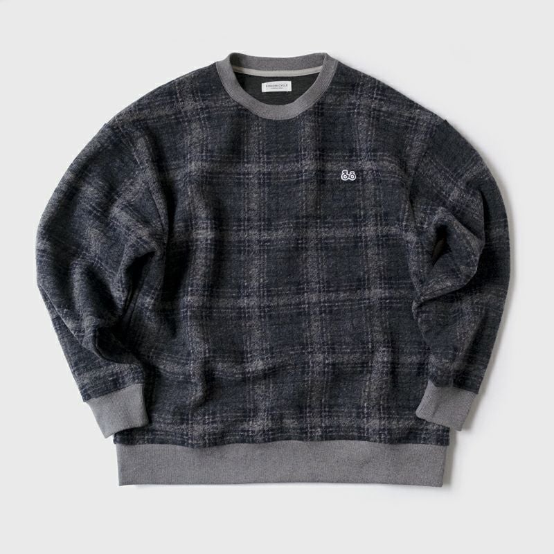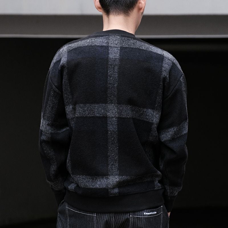 表地にはウールが入ったチェック柄の生地を、裏地にボンディング生地を使用したクルーネックの登場です。