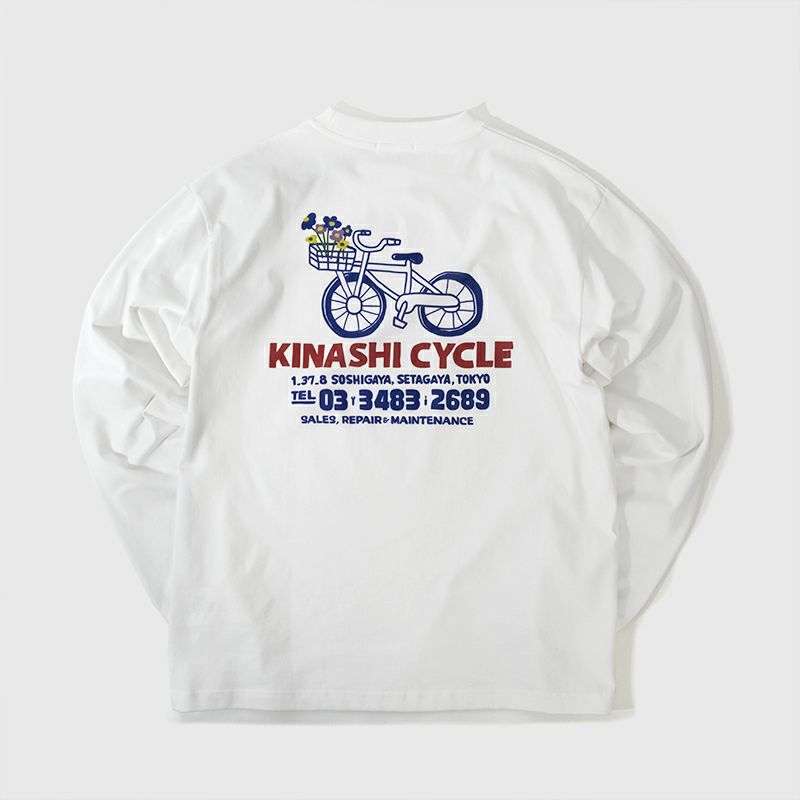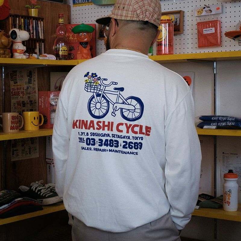 デザインは背中に描かれた自転車+花束イラストとショップ情報が目をひく1枚。