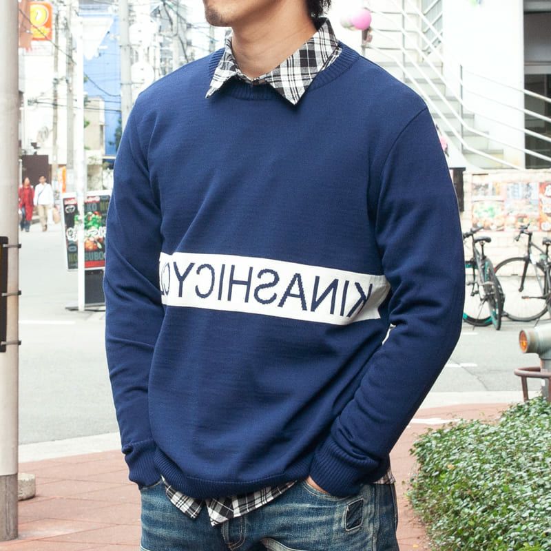 単品でもシャツの上からでも着用いただけるちょうどいい厚さのセーターです。