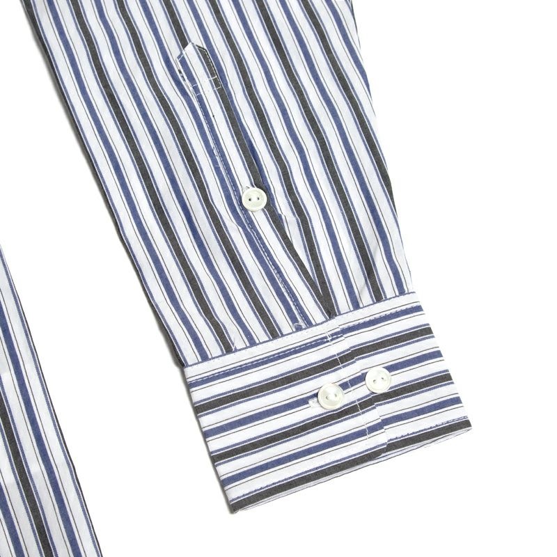 合わせやすいストライプ柄なのでジャケットのインナーでも◎なシャツです。