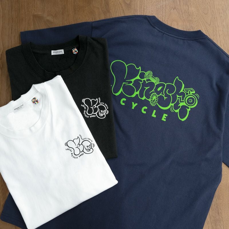 シェイクする「Kinashi CYCLE」ロゴを組み合わせてキャッチーな自転車屋さんを表現。
