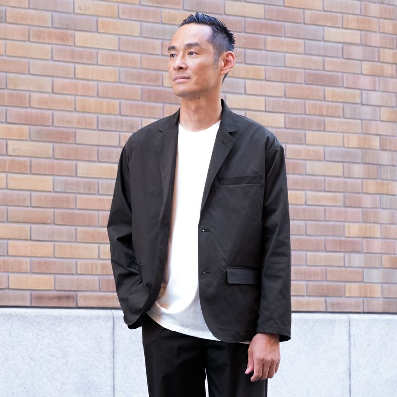 衿を少し高めにすることでジャケットの衿裏汚れを軽減する、特徴的なカッティングがポイントです。