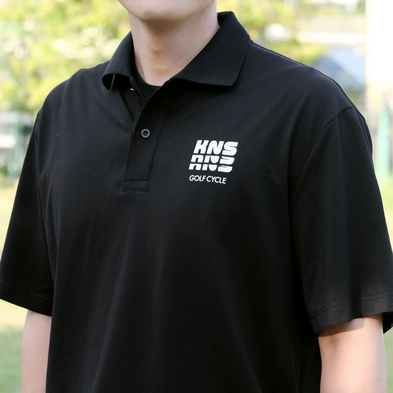 胸には「KNS GOLF CYCLE」のロゴ、バックの襟元には「KinashiCart」のマークがアクセントになったデザイン。